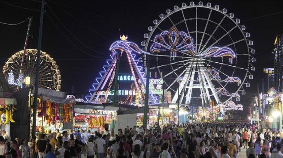 Feria de Málaga en agosto:feria de día de en el centro histórico y la feria de noche en el Real del Cortijo de Torres,donde además de las casetas para bailar y tomar algo,hay atacciones.